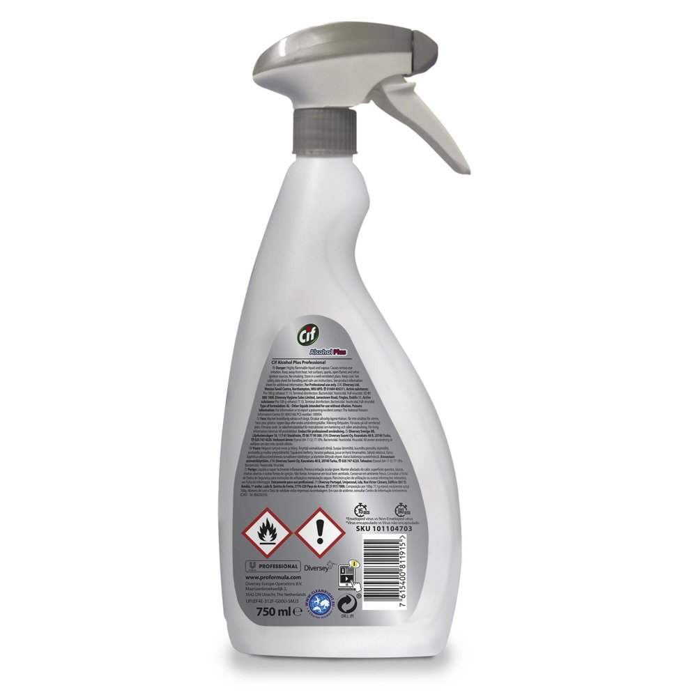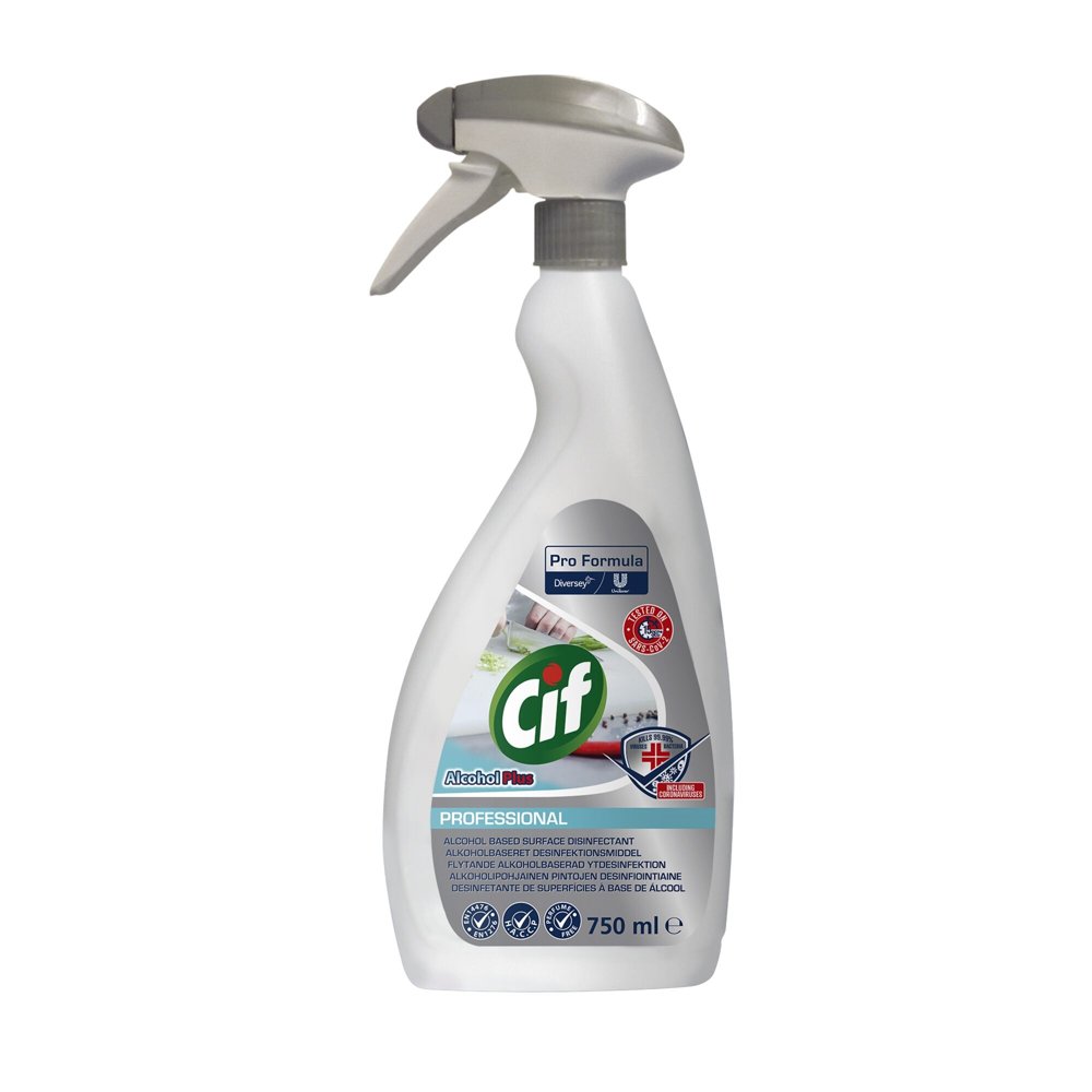 Cif Alcohol Plus Pro Formula 6x0.75L - Desinfektionsspray til overflader og udstyr med fødevarekontakt.