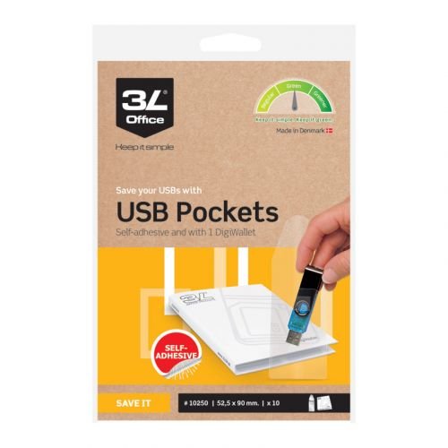USB-lommer er den ideelle måde at opbevare og beskytte dine USB'er. Brug den medfølgende DigiWallet (omslag) til at organisere dine USB enheder og opbevar dem indenfor rækkevidde. Selvklæbende USB-lommer har en praktisk lukkeflap som sikrer at USB'erne ikke falder ud.