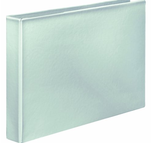 Bokpapp 2,5mm, hvit permfolie til utside og innside, klar plast til lommer. Ferdiggjøring: Utsveiset med innstikklomme side 1+4+rygg, klar rett lomme side 2, 4 rings 35mm combimek montert side 3