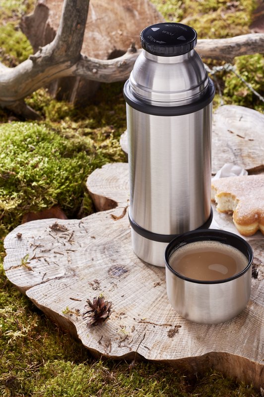 Sarek stål termokande med fremragende varmetilbageholdelse - flere testvinder. Fremstillet af 18/8 rustfrit ubrydeligt stål. 2 sorte gummiringe beskytter ståltermokanden mod slag og stød.