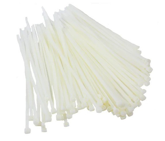 Disse kabelbindere er ikke genanvendelige og er fremstillet af nylon for at gøre det lettere at lukke og samle kabler. Kabelbindere er stropper med riller på den ene side. I enden er der en lås, som stroppen trækkes igennem. Stroppen strammes, og en låseflap i låsen forhindrer kabelbinderen i at åbne sig.