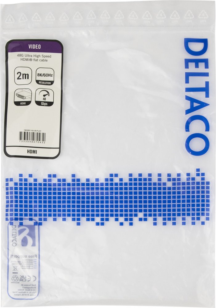 HDMI-kabel 48G 2m fladt sort