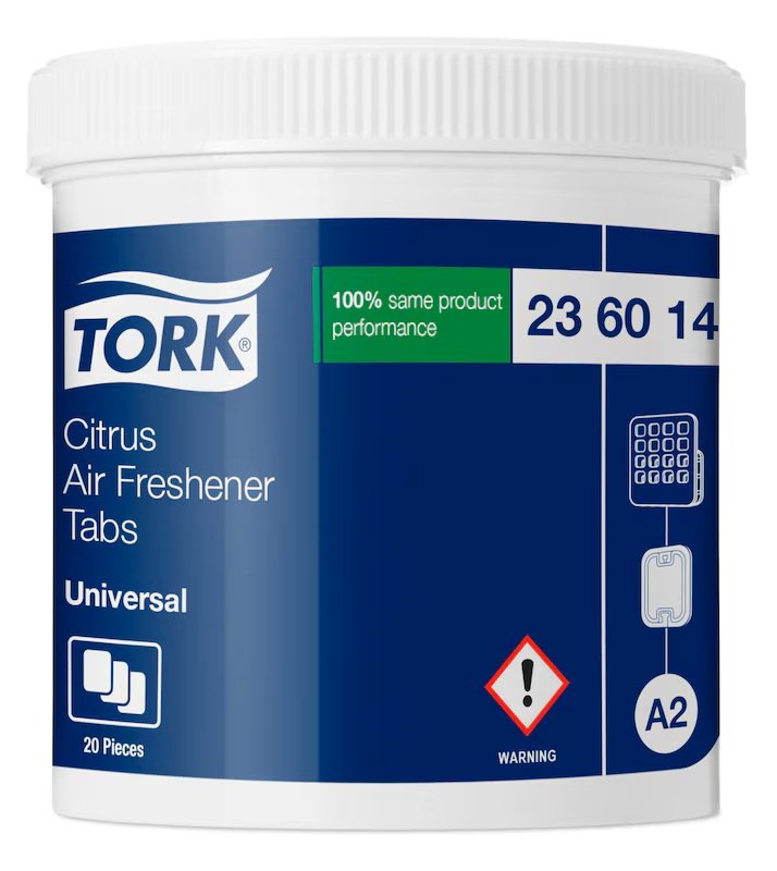 Giv toilettet et frisk duft med Tork Airfreshener Duftplader. Den imprægnerede gummiplade kan placeres, hvor det er nødvendigt, og afgiver en frisk citronduft.