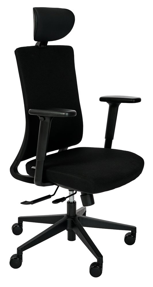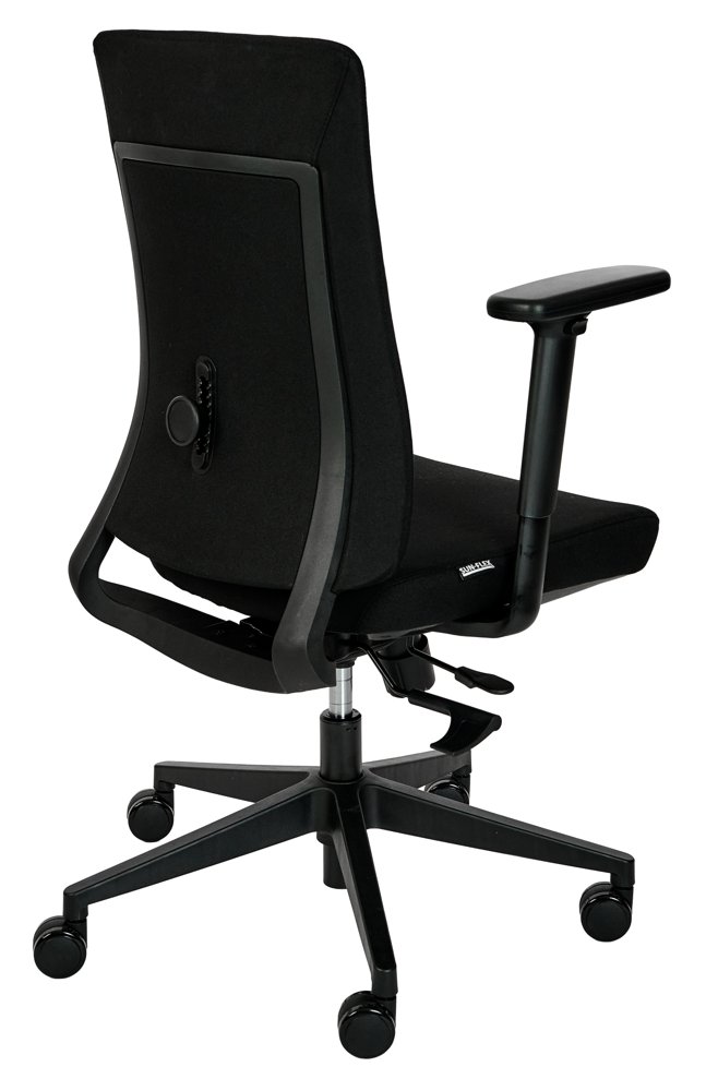 For maksimal fleksibilitet er SUN-FLEX®OFFICECHAIR EB udstyret med nakkestøtte og armlæn, der kan justeres eller fjernes helt efter behov. Dette gør stolen nem at tilpasse til forskellige arbejdsstile, brugere og arbejdsmiljøer. Den stabile konstruktion med støjsvage hjul sikrer sikker og jævn brug, uanset arbejdsfladen.