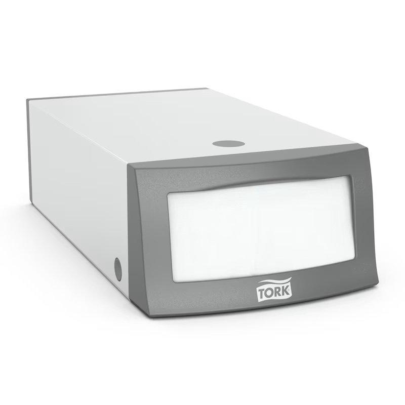 Tork Counterfold Servietdispenser til disk er velegnet til restauranter med selvbetjening, hvor servietter er til rådighed fra et centralt sted. Dispenseren reducerer forbruget og giver en frisk og hygiejnisk serviet hver gang.