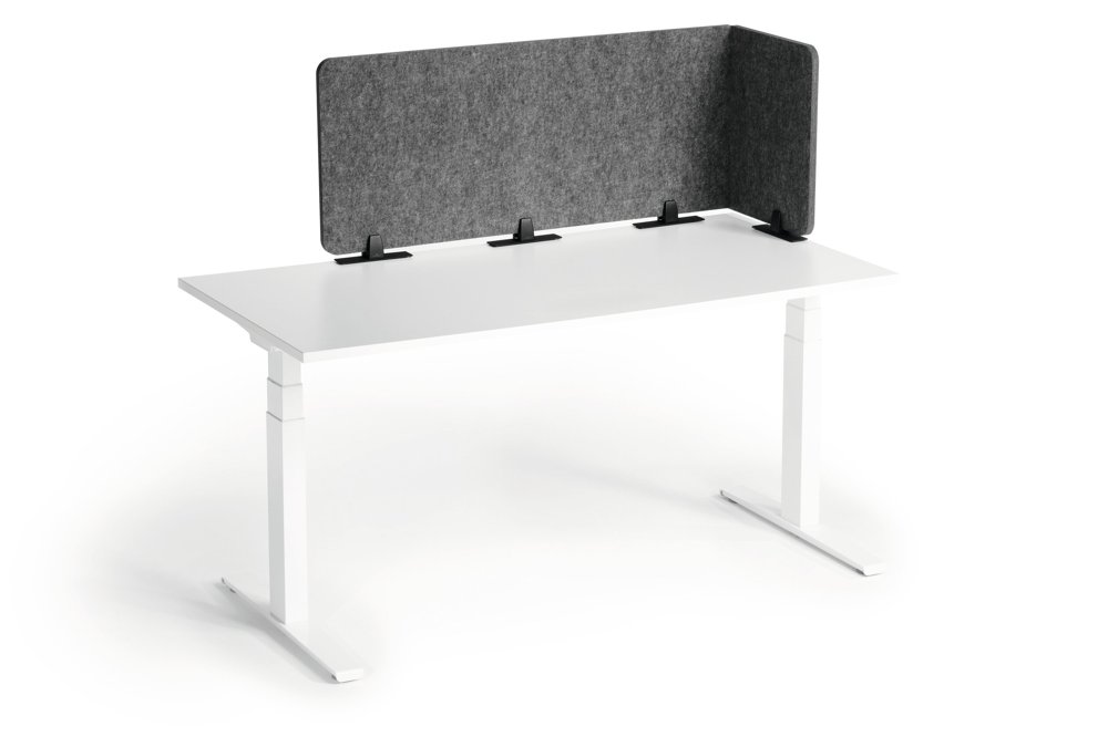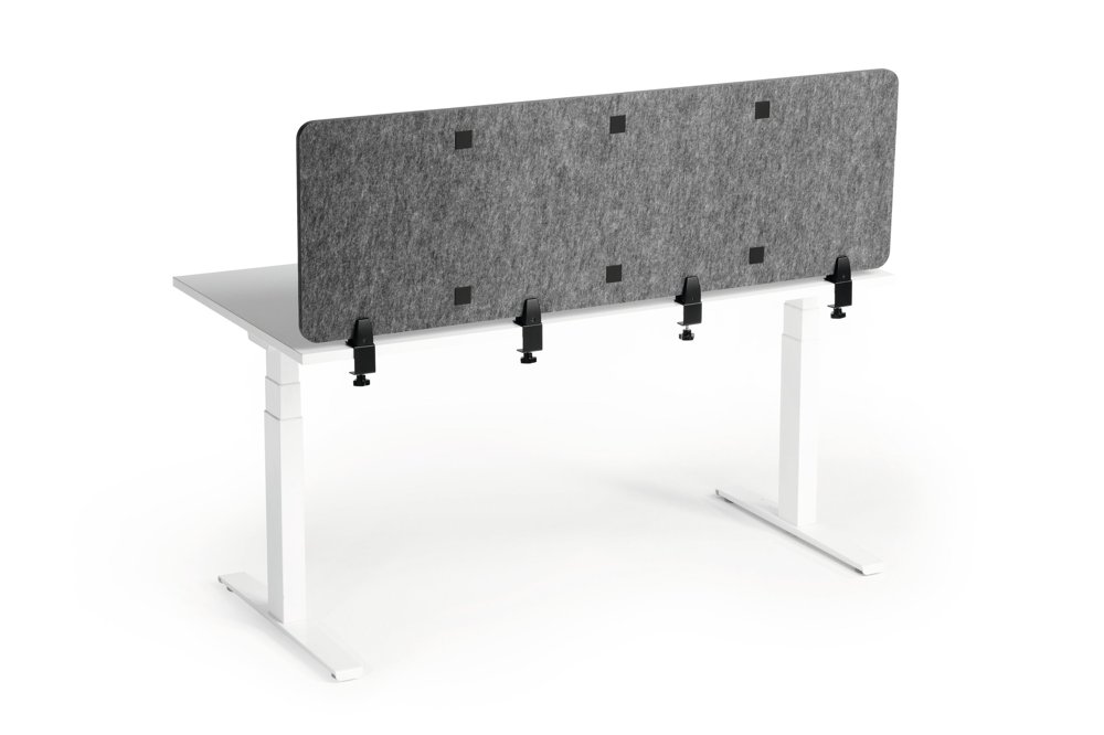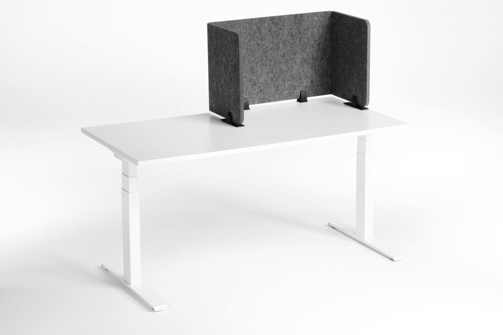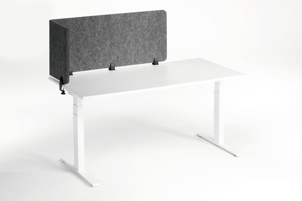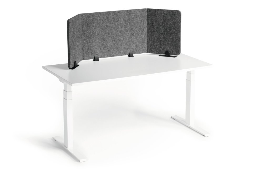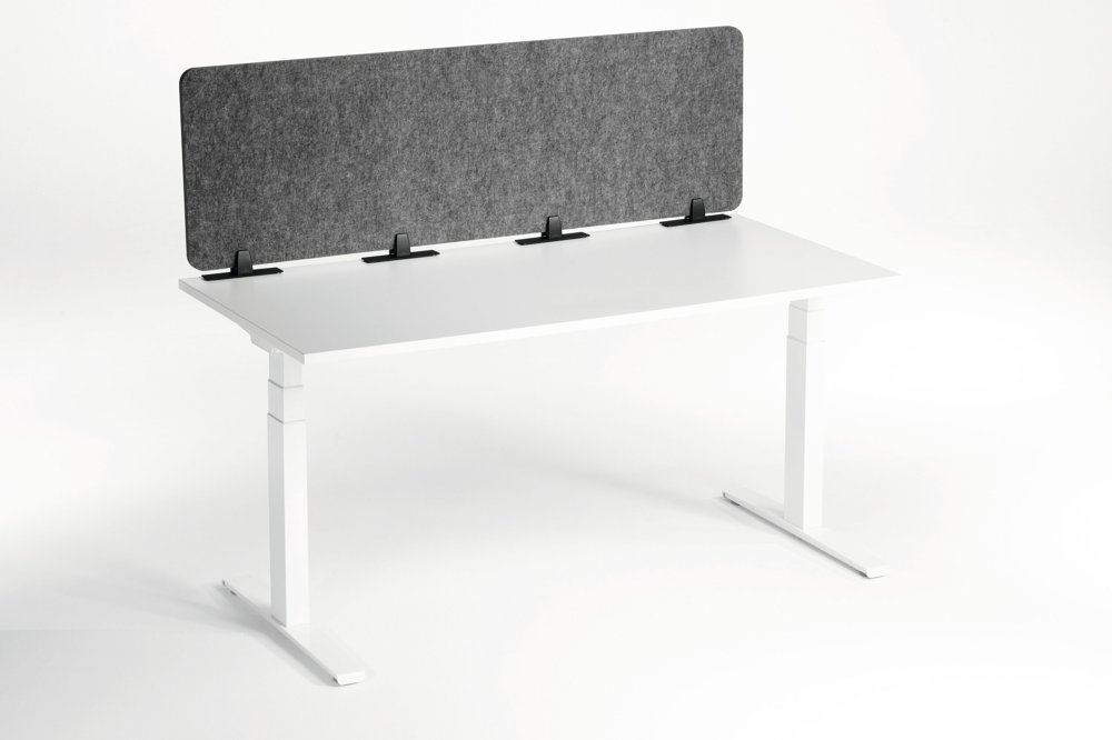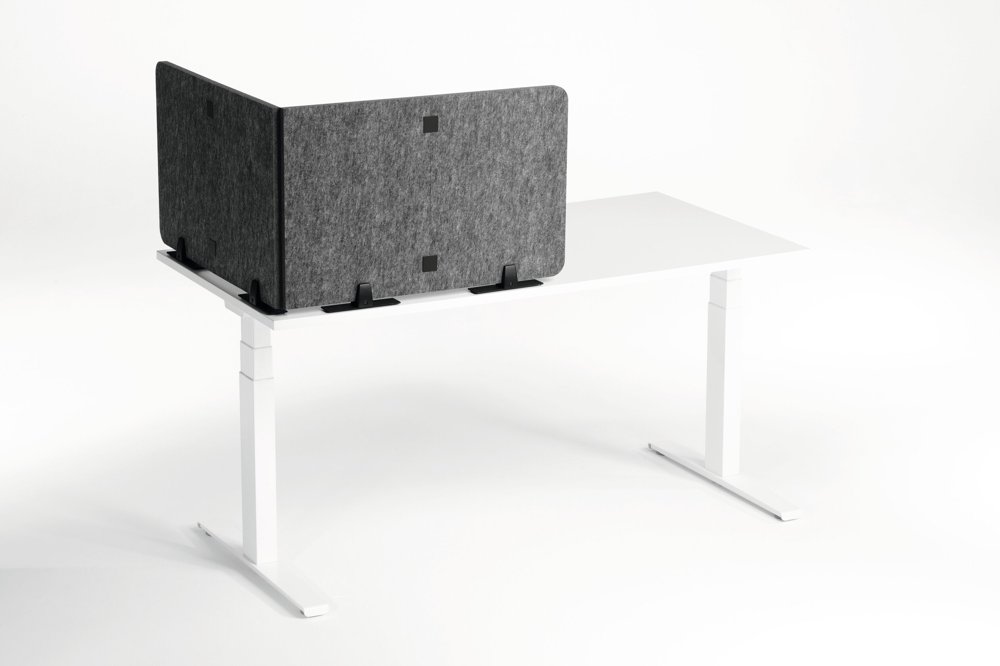 • Foldbar bordsskærm af genanvendt PET-filt til effektiv afskærmning og lyddæmpning af arbejdspladsen.