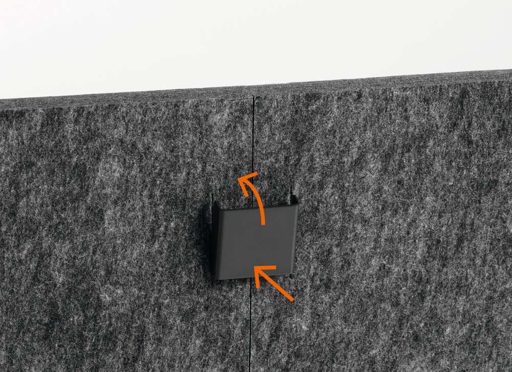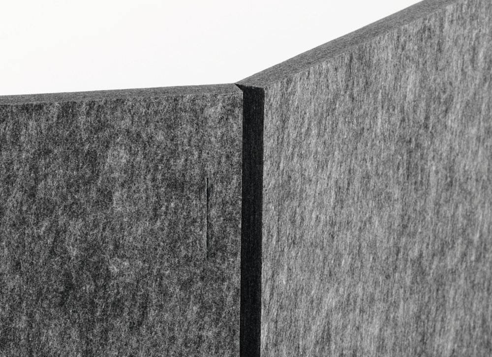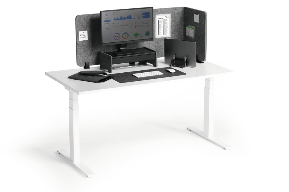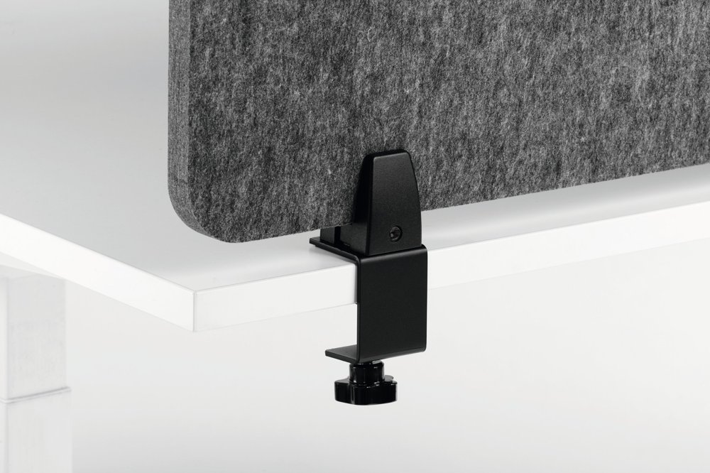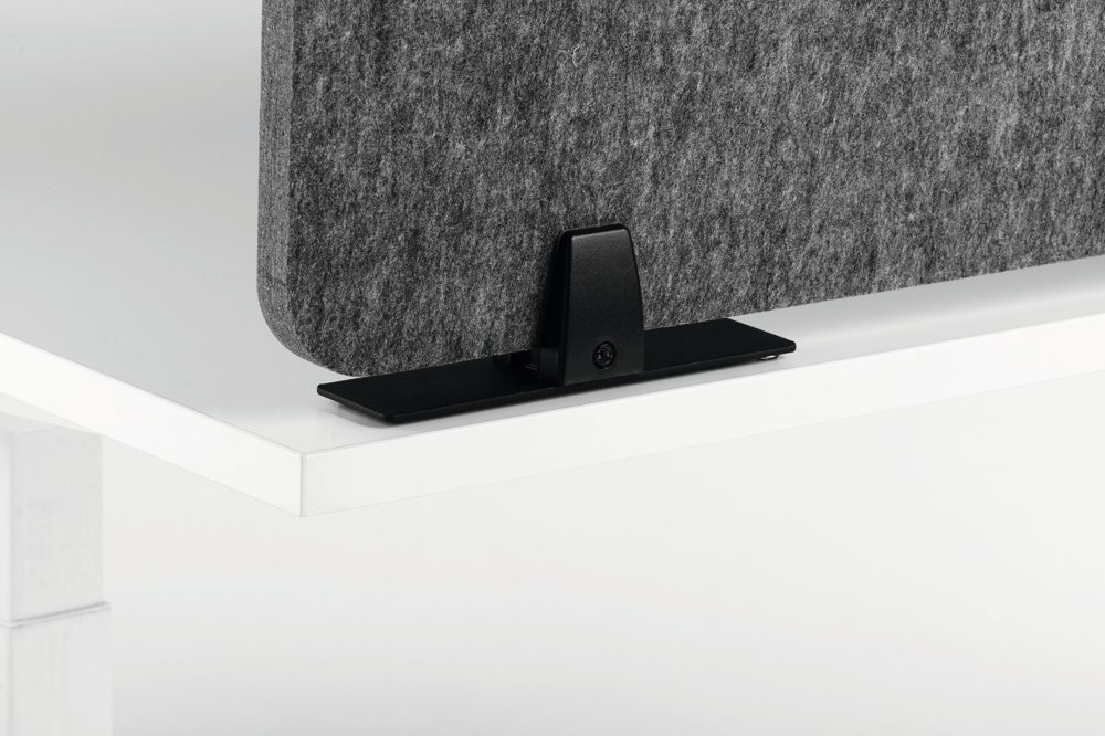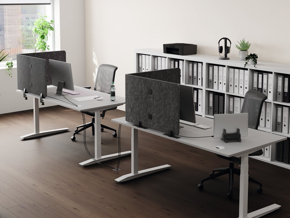 • Foldbar bordsskærm af genanvendt PET-filt til effektiv afskærmning og lyddæmpning af arbejdspladsen.