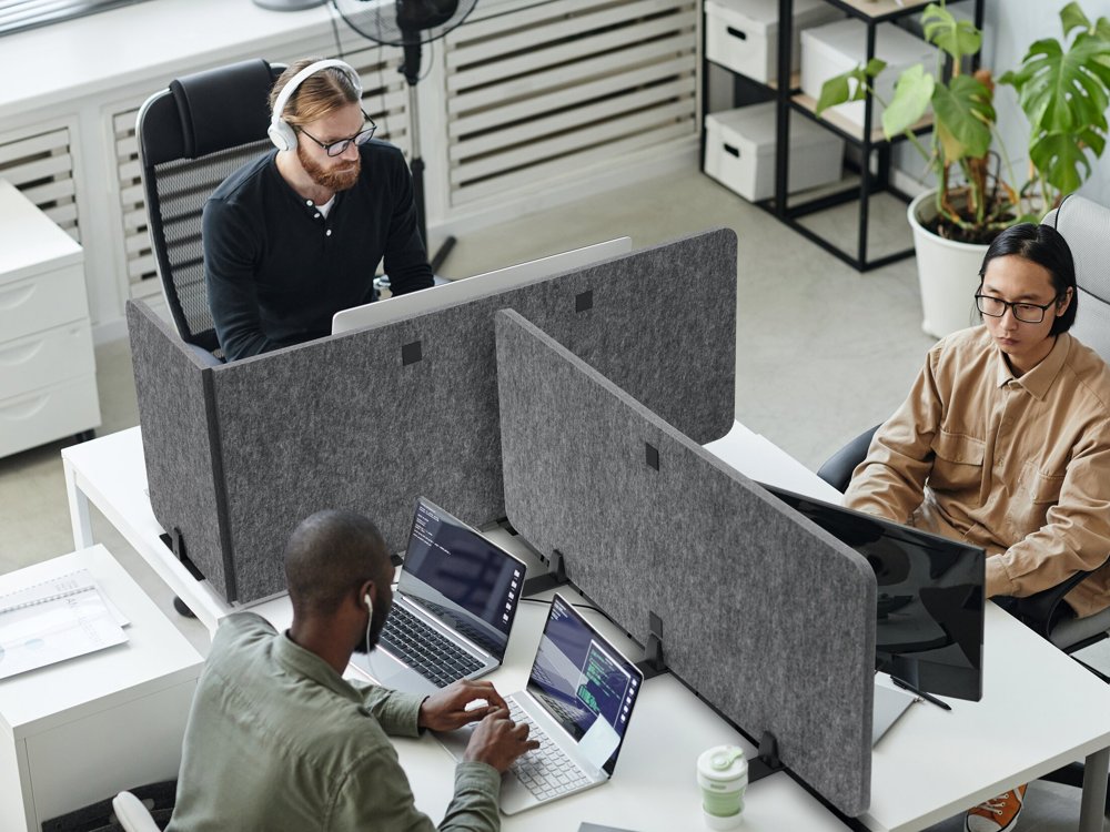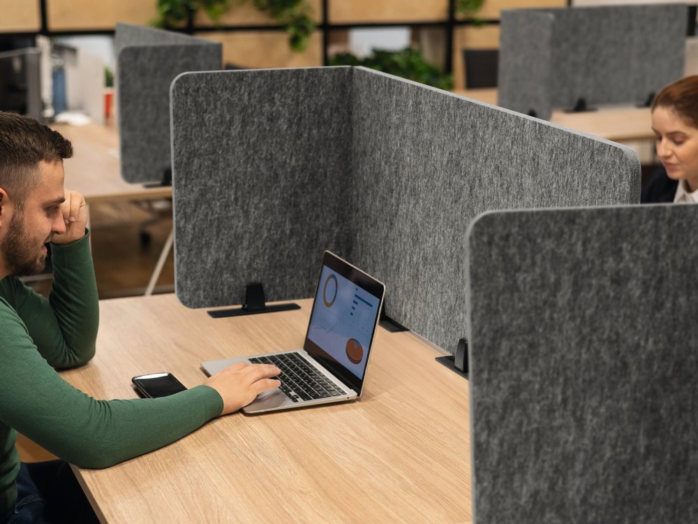• Giver en personlig afgrænsning af arbejdspladsen og bedre akustik, der reducerer forstyrrende støj
