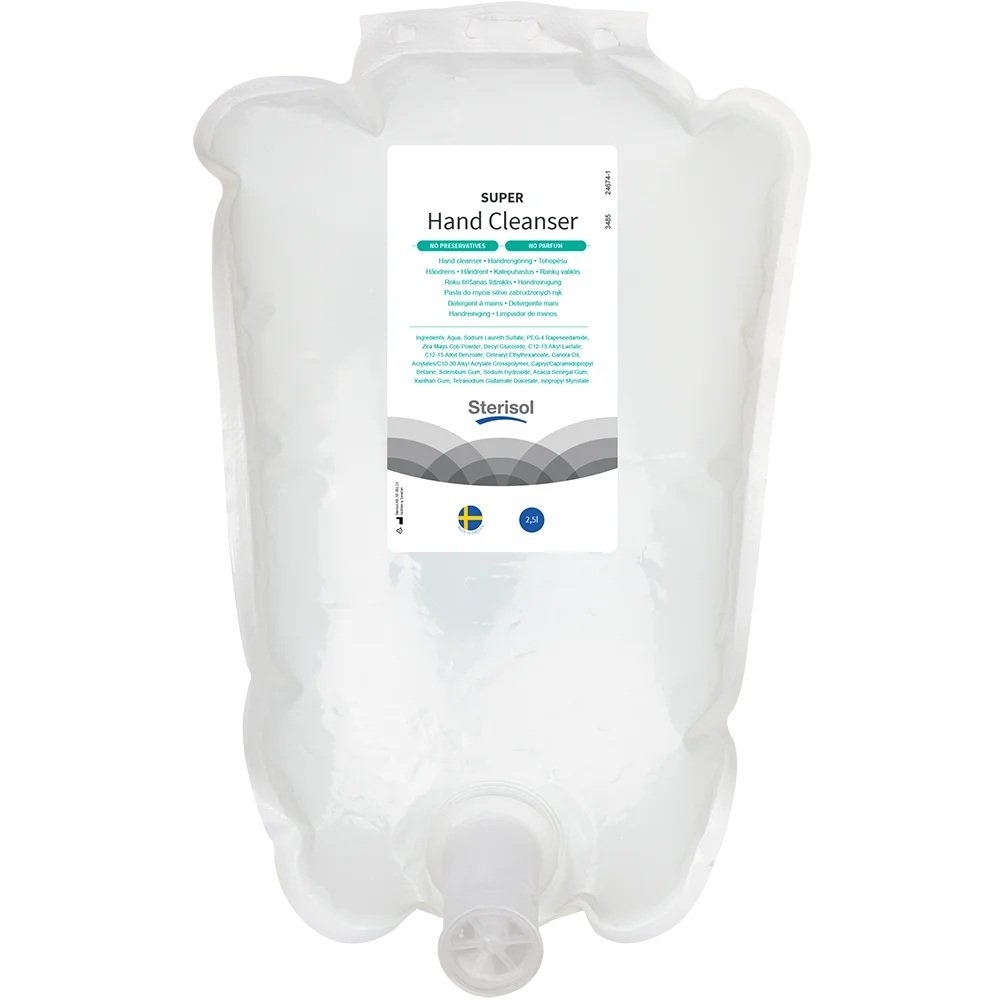 Sterisol SUPER Håndrens er en effektiv håndrens, som ikke skader hudens normale barrierefunktion. Den indeholder vegetabilske olier, som både opløser snavs og genfedter huden. Sterisol SUPER Handrens indeholder også et friktionsmiddel, der mekanisk hjælper med at skrubbe genstridige urenheder væk. Den er derfor meget velegnet i forbindelse med arbejde i miljøer, hvor du kommer i kontakt med snavs, olie og andre vanskelige at vaske stoffer.