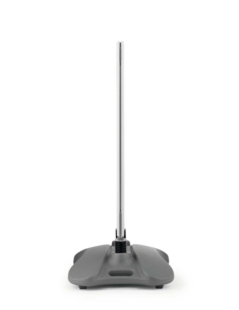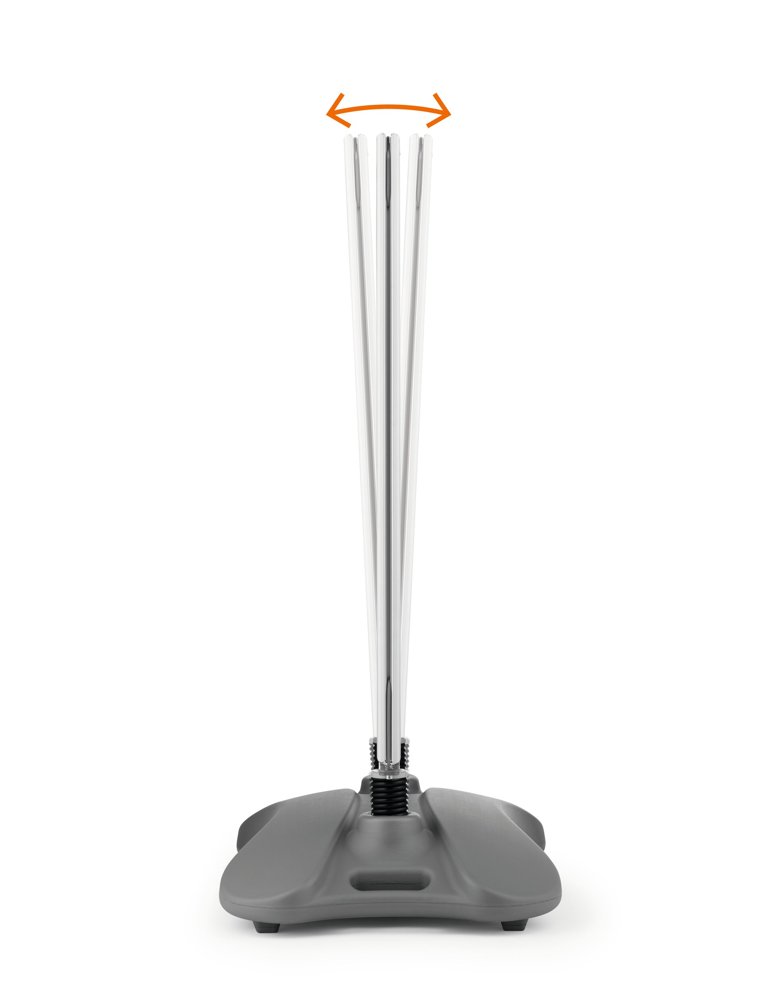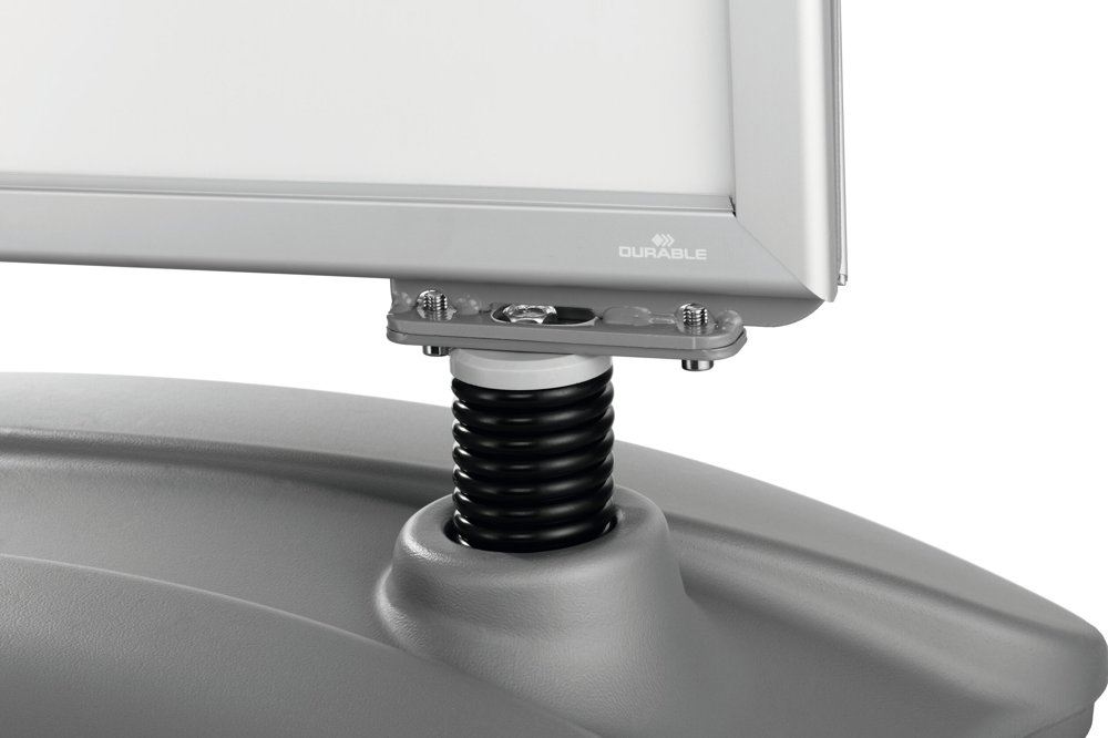 • Kraftige stålfjedre gør, at skiltet hælder afhængigt af, hvor meget det blæser, og mindsker dermed risikoen for, at hele stativet blæser omkuld.