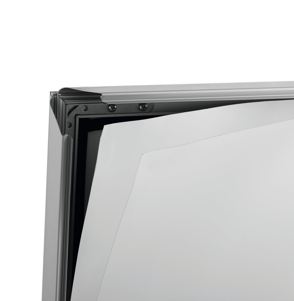 • Dobbeltsidet gadeskilt med solid base og aluminiums snaprammeteknologi med sølvanodiseret finish.