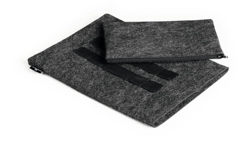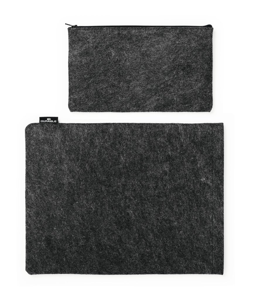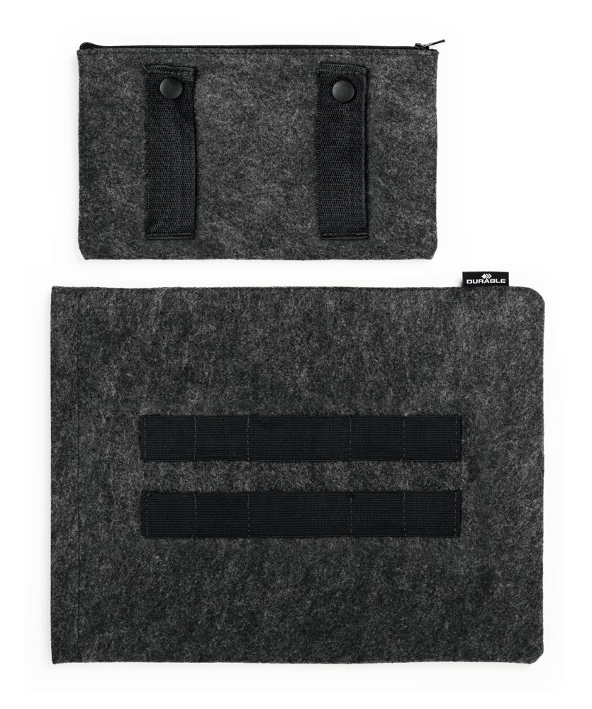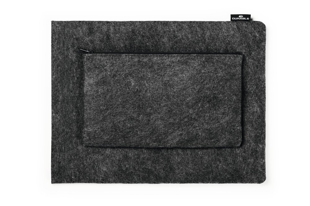 • Beskyttende cover til tablets eller bærbare computere fremstillet af 60 % genanvendt PET-filt, kombineret med ekstra tilbehørstaske