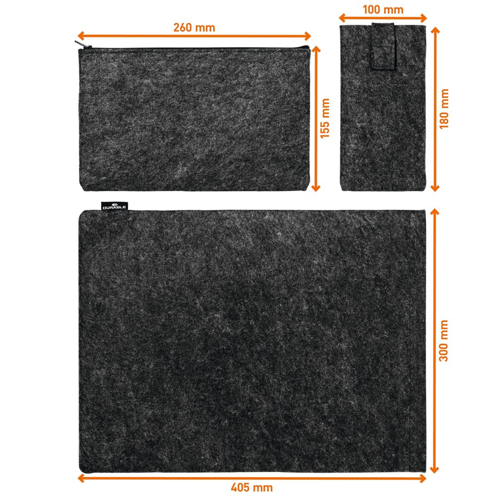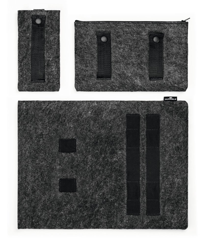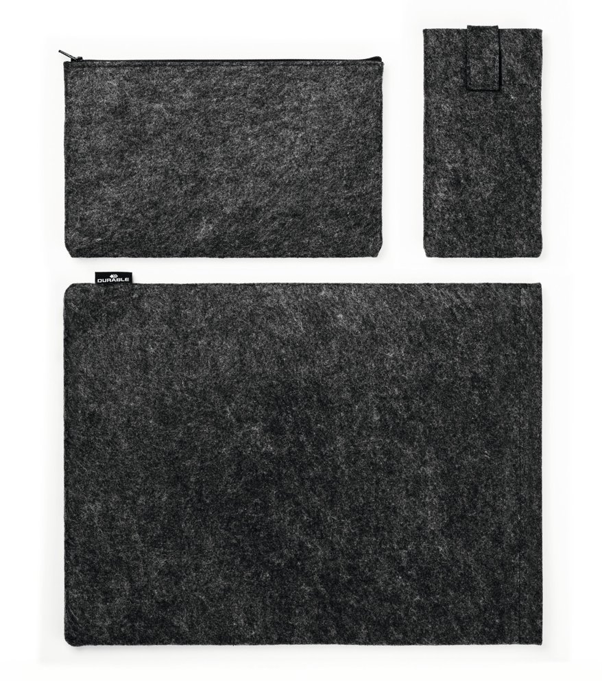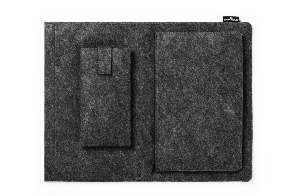 • Beskyttende cover til tablets eller bærbare computere fremstillet af 60 % genanvendt PET-filt, kombineret med ekstra tilbehørstaske
