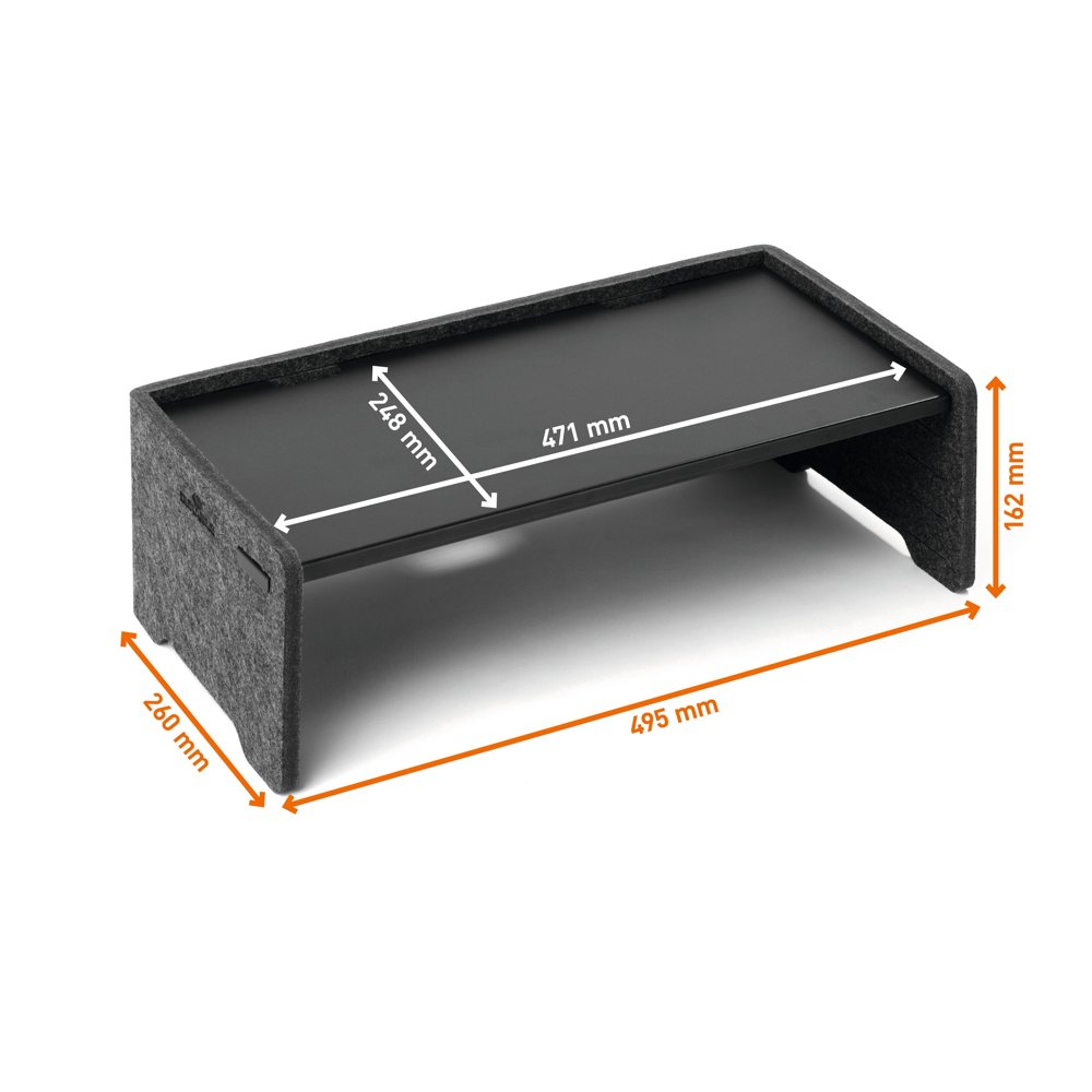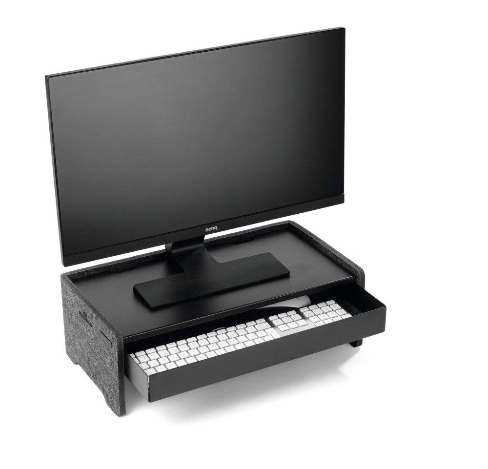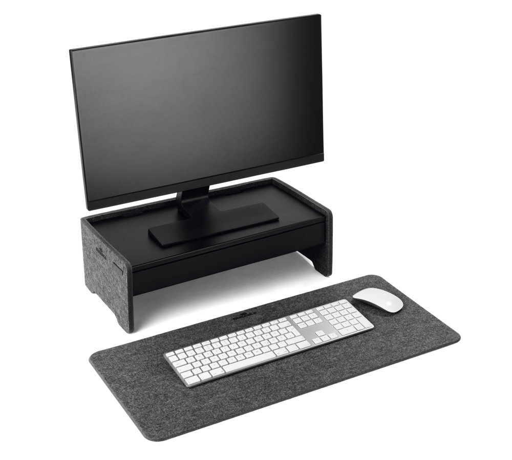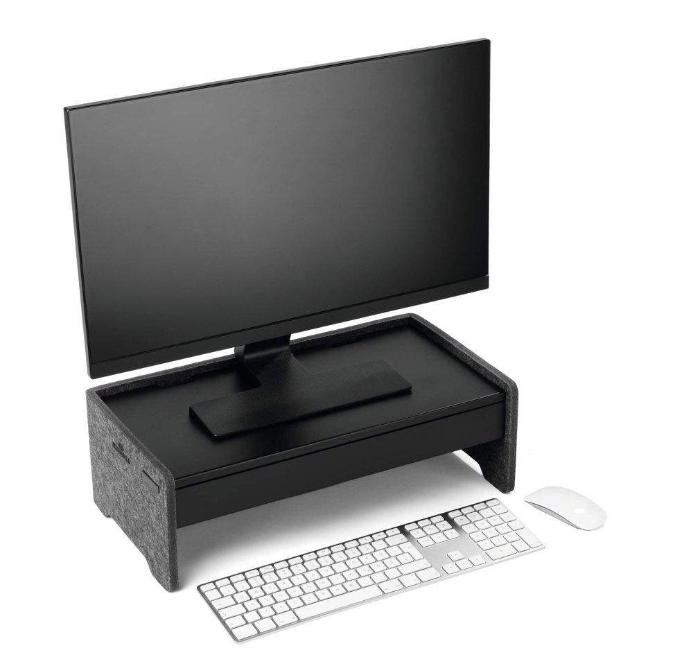 • Ergonomisk monitor stander. justerbar på 3 højder til skærme og bærbare computere fremstillet af 60 % genanvendt PET-filt