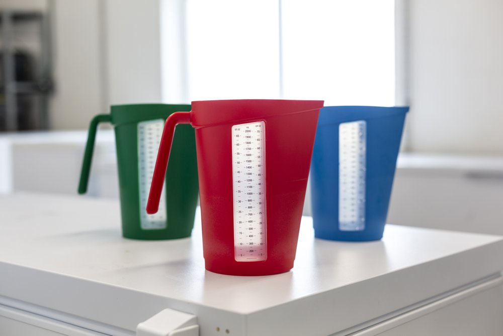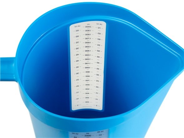 Let aflæsning af mål i milliliter på denne vel-designede kande. Den brede hældetud og det ergonomiske håndtag sikrer en let og præcis ophældning. Desuden er kanden designet med en bred bund, som sikrer, at den står stabilt og let kan rengøres.