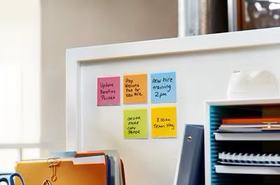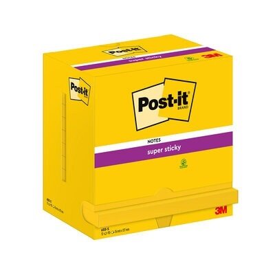 Post-it® Super Sticky har dobbelt så god klæbeevne (sammenlignet med originale Post-it® Notes). Disse superstærke og ekstremt alsidige notes er designet til at fremhæve beskeder – og de er perfekte til lodrette overflader og overflader, som er vanskelige at klæbe på.