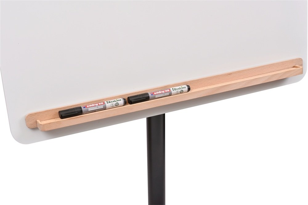 • Den magnetiske papirholder i naturtræ og pennehylden kan fjernes og opbevares på bagsiden af tavlen
