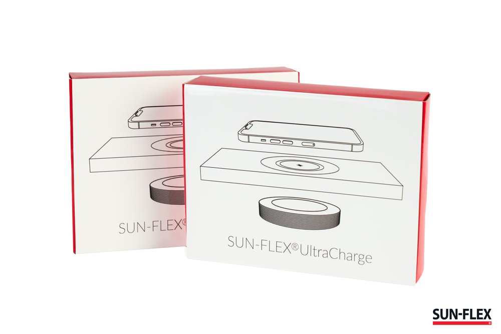 SUN-FLEX®UltraCharge er en avanceret trådløs oplader med lang rækkevidde, designet til at oplade Qi-kompatible mobile enheder gennem overflader fra 12 til 30 mm tykke. Den oplader enhver Qi-kompatibel enhed såsom mobiltelefoner, høretelefoner, smartwatches osv. Installeres diskret under skriveborde eller borde lavet af ikke-metalliske materialer såsom træ, glas eller marmor – helt uden at skulle bore huller. Ideel til brug på kontorer, hoteller, i hjemmet og offentlige rum.