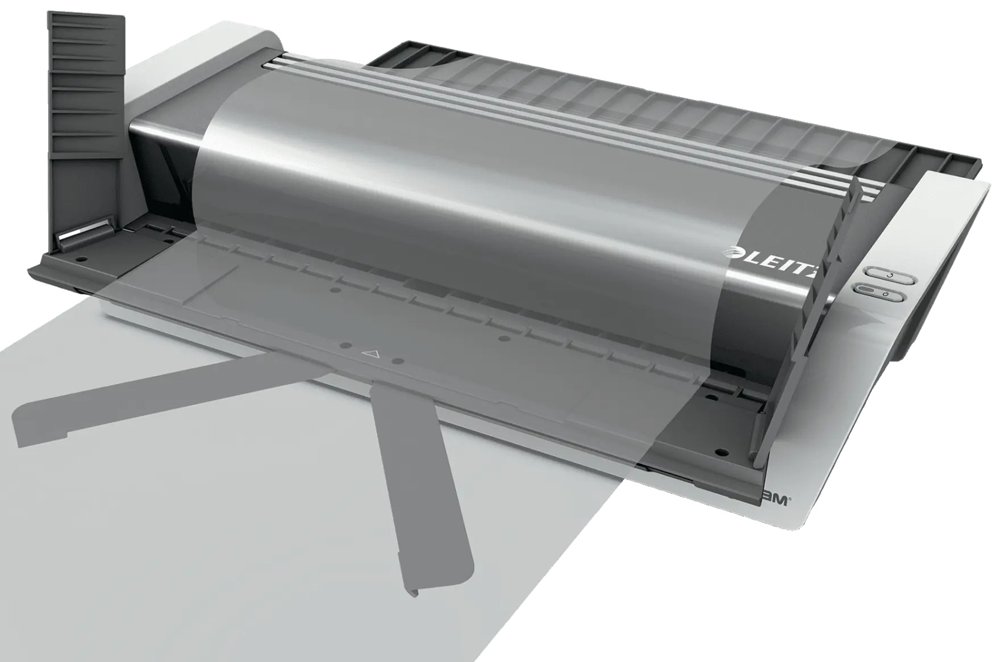 • Bekvem indsætning af lamineringslommen med indføringssystem og unikke patenterede fold ud klapper sikrer en helt jævn og glat laminering af høj kvalitet