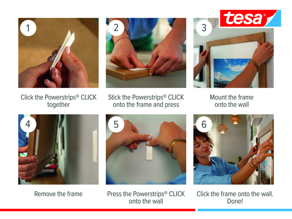 Vægpynt tilfører komfort og stil. Powerstrips® CLICK er den perfekte løsning til ophængning af rammer og andet vægpynt. Burretape-elementerne kan desuden anvendes flere gange og fjernes uden at efterlade rester.
