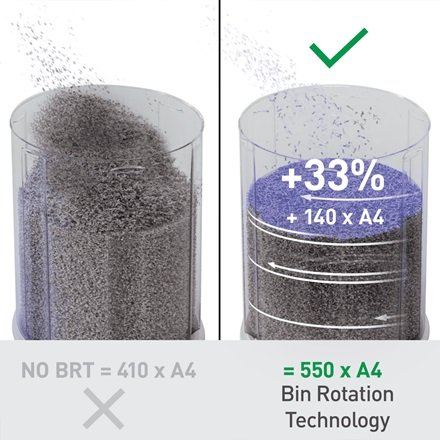 • Generøs kapacitet på 35 l rummer op til 550 x A4-ark, før den skal tømmes; +33 % mere kapacitet sammenlignet med ingen BRT (+140 x A4-ark).