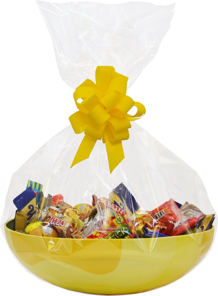Smukt dekoreret tinæg, indpakket i cellofan med sløjfe.