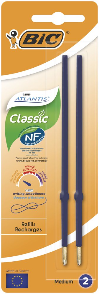Er din BIC Atlantis-pen løbet tør for blæk, men du vil stadig gerne bruge den? Den er nem at genopfylde med denne refillpatron: Skru enden af og udskift den tomme patron. Den mellemstore spids på 1,2 mm er omhyggeligt designet til at give et jævnt og stabilt blækflow, der er op til 35 % glattere end blækket i standard BIC-kuglepenne. / Refillen til din BIC Atlantis-pen fås med sort eller blåt blæk. Den 0,7 mm brede nålespids er omhyggeligt designet til at give et jævnt og stabilt blækflow, som kombineret med præcision giver perfekt skrivning.
