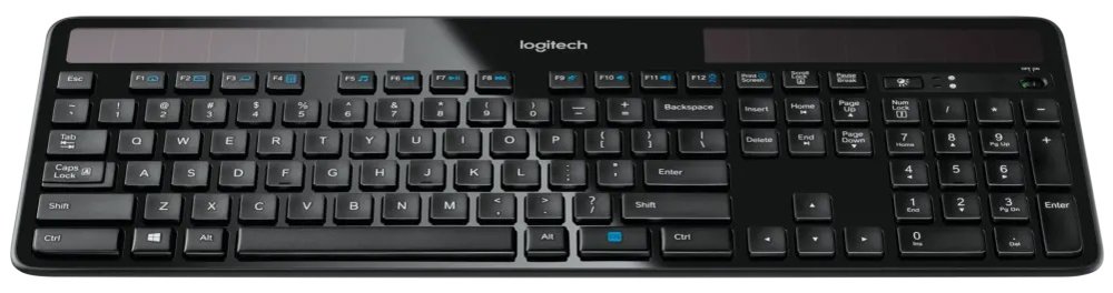Wireless Solar Keyboard K750 er et solcelledrevet trådløst tastatur, som oplades i dagslys. Dette tastatur oplader sig selv når der er lys, hvorefter det fungerer i mindst tre måneder i fuldstændig mørke. Batterier, ledninger og ladere hører dermed fortiden til.