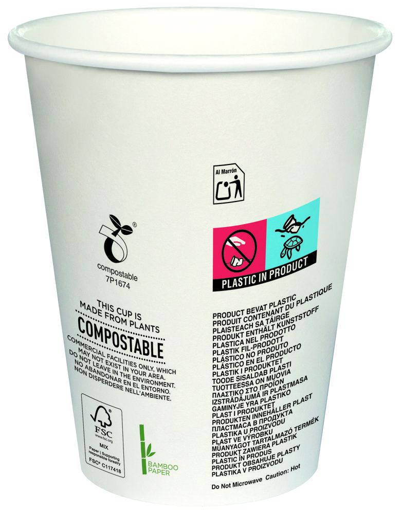Hot Cup Bæger 355ml (12oz) Ø 90mm bambuspapir/PLA