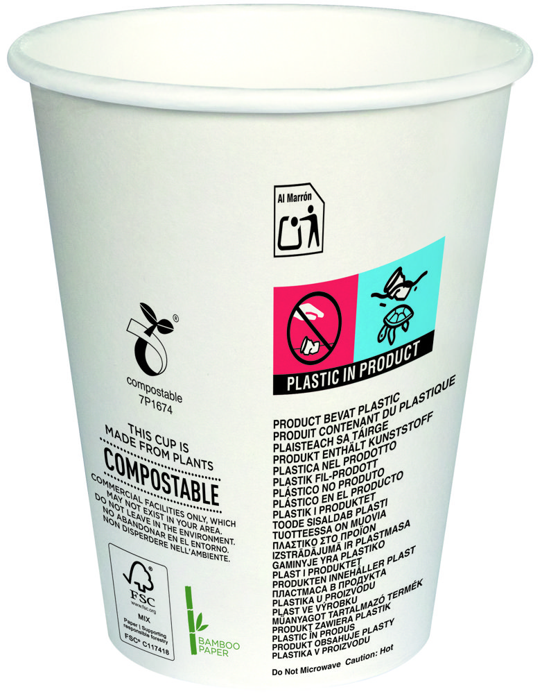 Hot Cup Bæger 235ml (8oz) Ø 80mm bambuspapir/PLA