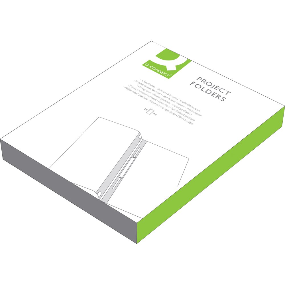 Q-Connect Project Folder. Mappe af god kvalitet med glasklar forside og farvet bagside, indexsstrip i fuld længde og eurostandard 8 cm-mekanisme. Perfekt til rapporter og tilbud.