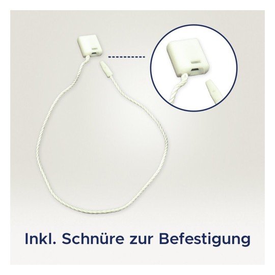 Højkvalitetsmærkerne lavet af mat hvid karton kan printes på begge sider - ideel til ekstra information på bagsiden. Håndteringen er praktisk og effektiv: Efter at A4-arket er blevet printet, kan de enkelte tags pænt adskilles fra arket langs den ekstra fine mikroperforering. Mærkerne kan udskrives præcist på alle standard laser- og inkjetprintere. For et ""hjemmelavet"" look kan du selvfølgelig skrive på vedhængene i hånden. Inkl. snore til at binde mærket fast med.