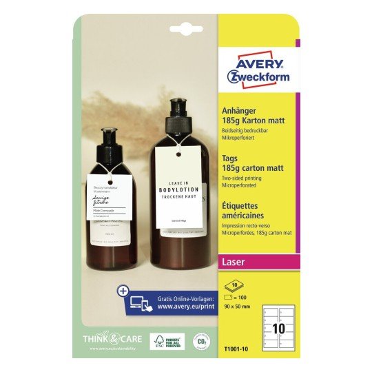 Skal dit produkt straks fange øjet? Så har Avery lige hvad du leder efter! Brug et manillamærke til produktmærkning i stedet for en almindelig standardmærkat. Produktet taler for sig selv, og de nødvendige oplysninger er anført på produktmærket. Passer perfekt til f.eks. produktmærkning. Uanset om det er i detailhandlen, i industrien eller privat: Avery tags lavet af hvidt karton af høj kvalitet kan bruges på en række forskellige måder, f.eks. som: Produktetiketter til produktmærkning, varemærkning til f.eks. mad, drikkevarer, kosmetik, tøj og planter, gavemærke, pakkemærke til kvalitetssikring eller materialeflowidentifikation.