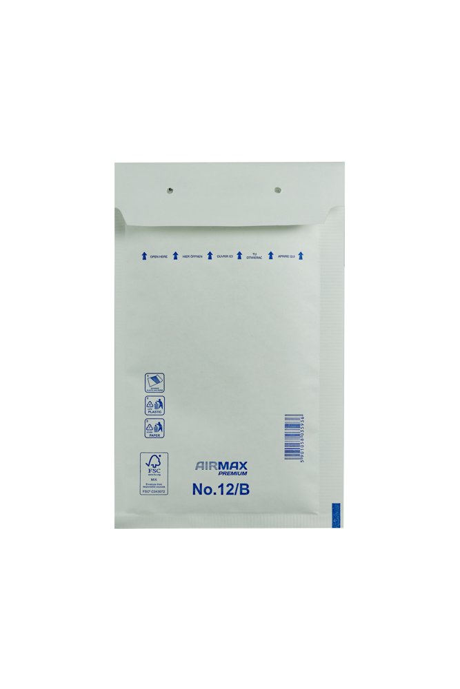 Boblekuvert Airmax Premium af 75g papir foret med 45g bobleplast, der absorberer stød og forhindrer fugt i at trænge ind. Med den smarte genåbningsløsning kan kuverterne lukkes på plastikstrimlen, hvis du ønsker, at det skal være nemt at åbne igen. Lukkes den i stedet på papiret, kan konvolutten ikke åbnes uden at der efterlades tydelige mærker. Produktet er FSC MIX certificeret.
